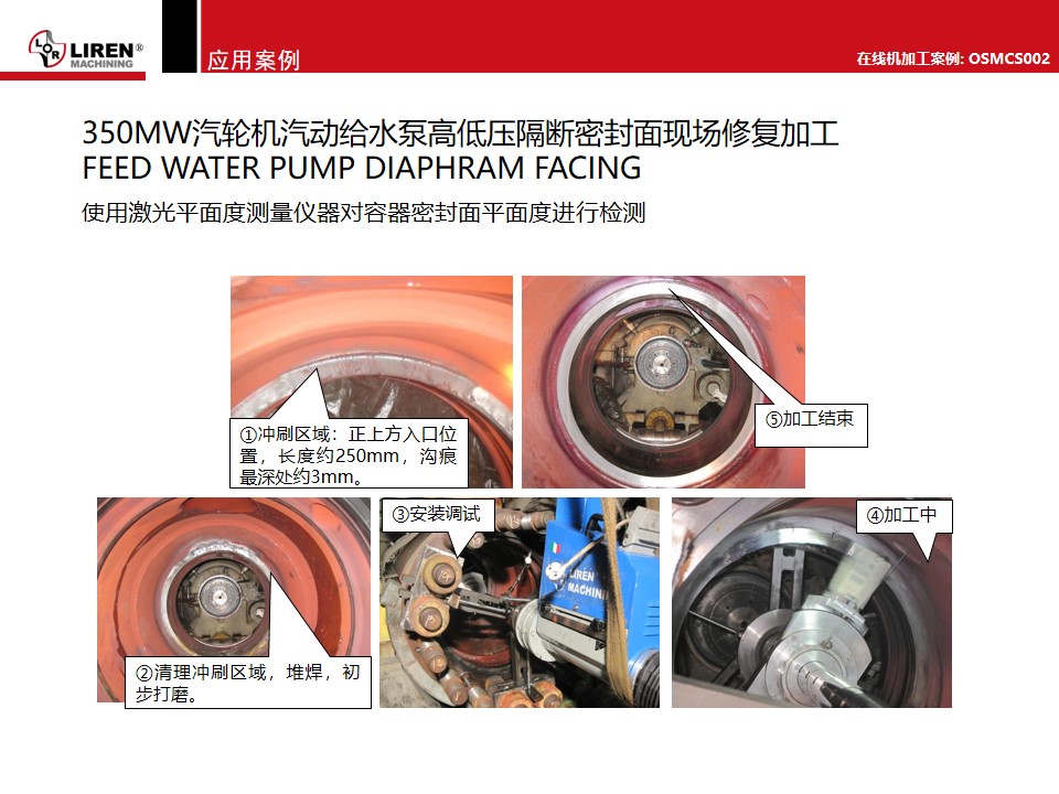 OSMCS002 350MW汽轮机汽动给水泵高低压隔断密封面现场修复加工